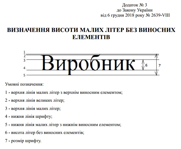Настоящий Закон № 2639-VIII устанавливает правовые и организационные основы предоставления потребителям информации о пищевых продуктах с целью обеспечения высокого уровня защиты здоровья граждан и удовлетворения их социальных и экономических интересов. Документ предписывает основные требования к нанесенной на продукт или товар информации о ее составе. Вся необходимая информация о требованиях к маркировке указана в соответствующем законе. Кроме всего прочего, вся информация должная быть читаемой и к этому требованию добавлено дополнение касаемо шрифтов информации. По этой причине, внимательно отнеситесь к тому, какой размер этикетки подойдет наиболее оптимально с учетом ниже указанных требований.