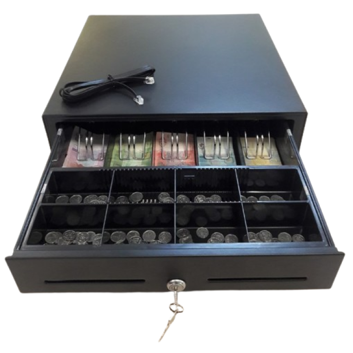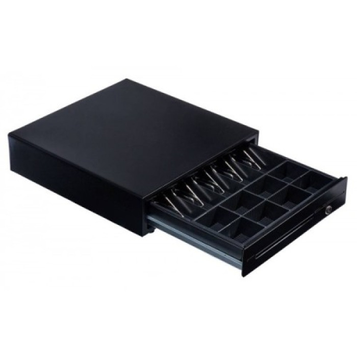 CK-410 - широко распространенная и самая продаваемая модель денежного ящика. Настоящее сочетание цены и качества, проверенное долгими годами эксплуатации в различных условиях. Денежный ящик CK-410 имеет отдельных 5 секций под купюры и 8-мь секций под монеты с перегородками. Держатели купюр с прижимным механизмом изготовлены из металла. Отдельно встроенные отсеки под банковские чеки и квитанции, для хранения документов о безналичных оплатах. Как и положено ящик имеет качественный и надежный замок под ключ, с функцией автоматического открытия. Автоматическое открытие может происходить только при подключении кассового ящика CK-410 к компьютерно кассовой системе или напрямую в фискальный регистратор или принтер чеков. Порт денежного ящика рассчитан на номинальное напряжение 24В, кратковременно подаваемое при печати чека. Модель выпускается в двух вариантах исполнения по цвету: черный корпус и белый. Габаритные размеры 410 мм х 420 мм х 100 мм, говорят о полноразмерности ящика и при выборе следует учитывать данные размеры, если стоит задача встраивать в кассовый бокс. Денежный ящик или как его по-другому называют кассовый ящик, периферийное торговое оборудование, которое является не только органайзером для хранения наличных средств на кассе, но и также оберегает материальные ценности от несанкционированного доступа третьими лицами. Удобство хранения и быстрая инкассация сортированных банкнот несомненное преимущество использования денежных ящиков для кассовых мест.