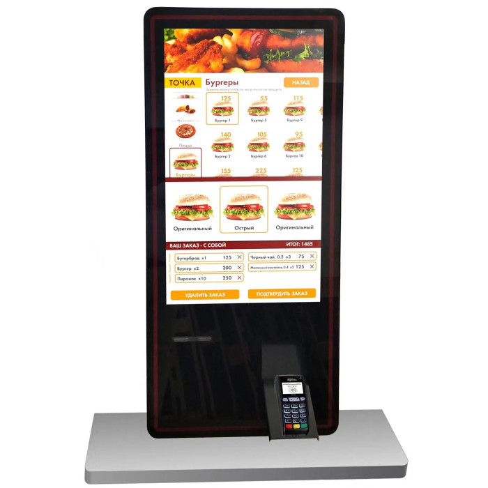 Касса самообслуживания Crane 1 применяется в фаст-фуде для быстрого обслуживания гостя. На сенсорном поле формируем из представленного меню свой заказ. Его можно оплатить любой банковской карточкой на месте через банковский терминал, не теряя времени. Если оплата наличными, то переводим заказ в точку выдачи нашей корзины и на месте выдачи кассиру оплачиваем кешом наш заказ. Быстро и удобно, не надо стоять в очереди. Киоск с диагональю 32” позволяет сразу выводить на одну страницу большой обьем меню. Очень удобно при выборе блюд. Специалисты нашей компании имеют опыт внедрения подобных решений с программой Serv, сейчас пробуем с Poster. Операционная система- Android 13. Специалисты Магнат-Трейда помогут Вам в подборе оборудования, установки, монтажа оборудования и дальнейшего сервисного обслуживания.