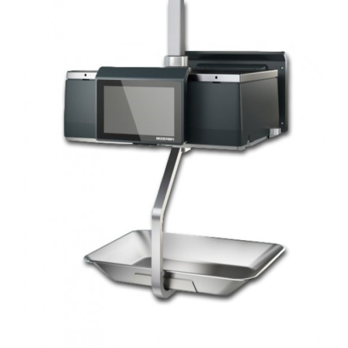 Висококласна вага підвісного типу Bizerba XC 400 від відомого німецького виробника призначена для рибних відділів. Дані ваги виконані з використанням фірмових технологій Easy Clean Surface, Easy Clean Display, що забезпечує швидке та легке видалення приклеєних до корпусу ваг етикеток, а також легке очищення дисплеїв екранів від бруду. Роботу продавця з вагами забезпечує сенсорний монітор з діагоналлю 10 дюймів, для клієнта встановлено кольоровий LCD дисплей на який може виводитися як інформація про його покупку, так і рекламна інформація про поточні акції. Принтер даних ваги дозволяє друкувати інформацію зі швидкістю до 100мм/с на носіях шириною до 80 мм, будь то стандартні етикетки з підкладкою, чекова стрічка або етикетка без підкладки. У серці ваг встановлено комп'ютер із процесором Intel Atom N2800, двома гігабайтами оперативної пам'яті та накопичувач на 32 гігабайти. Керує ж вагами Bizerba XC 400 фірмова оболонка, встановлена на ОС Windows Embedded POSReady7.