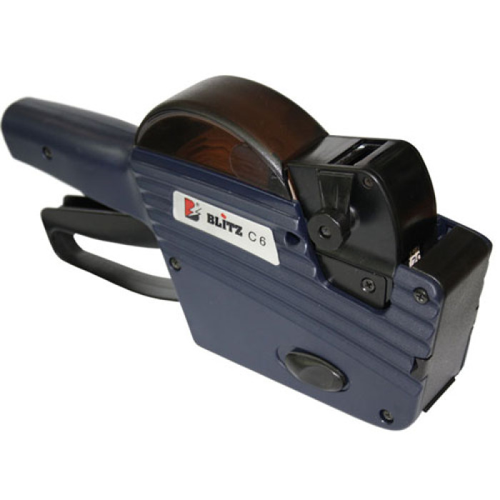 Blitz C6 - класичний однорядковий маркіратор на етикет-стрічці розміром 26х12 мм. Обладнання виробляється відомим Італійським виробником OpenData, що є запорукою якості складання та довговічності даного етикет-пістолета. За допомогою Blitz C6 можна завдати максимум 6 символів цифрової інформації з додаванням спеціальних символів типу: грн, коп., ., -. Найчастіше етикет-пістолет Blitz C6 купують для швидкої переоцінки товару без необхідності заздалегідь друкувати етикетку. На гумовому валу пристрою виставляються необхідні цифри та методом відбитку дані переносяться на паперову етикетку. При ручному режимі роботи в залі маркету дуже важлива надійність та довговічність обладнання, тому важливо вибрати саме надійний та зносостійкий етикет-пістолет, такий як Blitz C6 Етикет-пістолет – базовий інструмент маркування товарів. Інформація наноситься шляхом відбитку цифрових та символьних даних спеціальним чорнилом на паперовому носії (етикет-стрічці). Всі етикет-пістолети та Blitz C6 зокрема обмежені за кількістю рядків та символів, які можуть бути нанесені на етикет-стрічку. Якщо Ви не можете зробити свій вибір, завжди можна отримати вичерпну консультацію у наших менеджерів з цього обладнання.