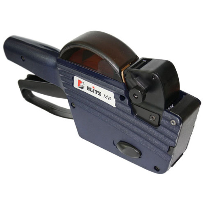 Blitz M6 - класичний етикет-пістолет, який здатний наносити цифрові значення в один рядок. Максимальна кількість символів - 6. Крім цього, можна використовувати додаткові приставки у вигляді спеціальних символів типу "грн". Відмінна особливість Blitz M6, великі символи, що добре читаються, розміром 3х8 мм. Використовуваний розмір етикет-стрічки – 26х16 мм. За допомогою цього обладнання зручно проводити переоцінку товарів у торгових залах. Якісний та надійний інструмент від світового виробника OpenData прослужить не один рік. Достатньо купувати при необхідності витратні матеріали для Blitz M6 у вигляді етикет-стрічки та фарбуючих валиків. Жирний відбиток великих цифр одна з головних переваг перед аналогічними моделями інших виробників. Пристрій вважається професійним інструментом і не мала вартість етикет-пістолета Blitz M6 обумовлена надійністю та довговічністю. Етикет-пістолет – базовий інструмент маркування товарів. Інформація наноситься шляхом відбитку цифрових та символьних даних спеціальним чорнилом на паперовому носії (етикет-стрічці). Всі етикет-пістолети та Blitz M6 зокрема обмежені за кількістю рядків та символів, які можуть бути нанесені на етикет-стрічку. Якщо Ви не можете зробити свій вибір, завжди можна отримати вичерпну консультацію у наших менеджерів з цього обладнання.