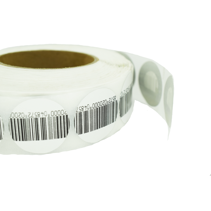 Етикетка із штрих-кодом радіочастотна 40 мм захисна біла кругла - огляд та описЕтикетка для радіочастотних протикрадіжних систем У рулоні 1000 штук Розмір 40 мм Несуча частота 8,2 МГц Технологія Радіочастотна Кількість е...