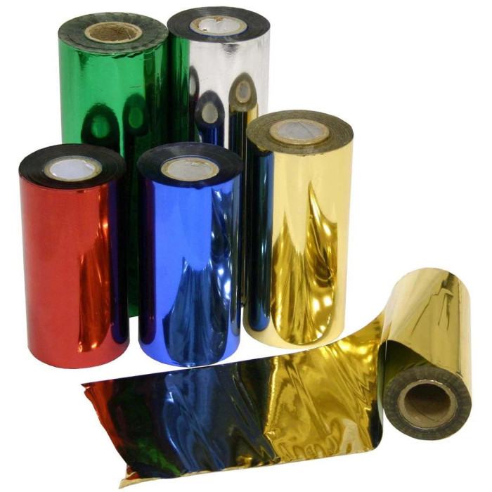 Стрічка для термотрансферних принтерів ширина 64 мм. - намотування 300 м. в одному рулоні. Кольорова: Золото, Червоний, Синій, Зелений, Срібло, Темно-синій, Коричневий, Сірий, Жовтий