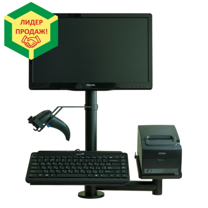Робоче місце касира для ФОП. Найпопулярніший комплект, що користується великим попитом, в якому включені найнеобхідніші для роботи елементи. Рекомендується для автоматизації торгівлі, де не потрібне використання фіскального реєстратора (ФОП без РРО), а для друку чеків використовується звичайний термопринтер. Базовий комплект: ергономічна стійка + системний блок та монітор діагоналлю 18,5 дюймів + сканер штрих-кодів + принтер для друку чеків + клавіатура У комплект входить програма для касового місця - МініСофт