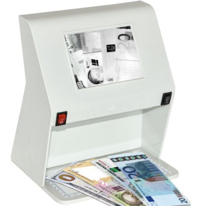 Спектр Відео Євро – детектор для визначення справжності всіх валют світу. Зокрема, його застосовують для контролю справжності євро, доларів, гривень, рублів. А також використовують для визначення справжності цінних паперів, документів, акцій та марок. Досить часто детектори Спектр Відео Євро можна зустріти в пунктах, де перевіряють посвідчення, посвідчення водія та ін. Що вміє детектор Спектр Відео Євро: ультрафіолетовий контроль, інфрачервоний контроль, перевірка на просвіт у білому світлі, перевірка розмірів банкноти на відповідність геометричним параметрам, магнітний контроль з можливістю підключення зовнішнього проводового датчика. І найважливіше, можливість збільшення в 10-кратному розмірі елементів захисту для перевірки найменших елементів. Пристрій працює від мережі 220В, сумарне енергоспоживання близько 52 Ватт. Що стосується потужності світіння ультрафіолетової лампи, то вона становить 9 Ватів, чого більш ніж достатньо для комфортного перегляду навіть при яскравому освітленні в кімнаті. Незважаючи на всі перелічені властивості, функції та особливості, детектор Спектр Відео Євро досить не дорогий і його використання дозволить уберегти себе від можливих підозрілих і фальшивих купюр, яких за статистикою припадає по 5 на сотню. Всі детектори валют, як і Спектр Відео Євро, дозволяють перевіряти справжність не тільки банкнот, а й будь-яких документів з аналогічним ступенем захищеності. У каталозі представлені найпопулярніші та найоптимальніші за ціною та якістю детектори валют від відомих виробників. Більш детальну консультацію та допомогу у виборі завжди можна отримати у наших менеджерів та технічних фахівців. Слід пам'ятати, що використання детектора справжності банкнот істотно знижує ризик фінансових втрат будь-якого підприємства.