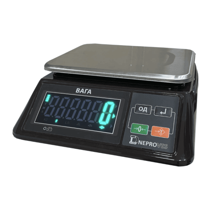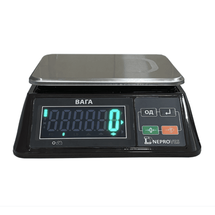 Ваги фасовочні Дніпровес ВТД-ФО 3/6/15/30 кг - огляд та описРежим поштучного зважування; Світлодіодний індикатор великого розміру, цифри більше ніж 4 см; Великі клавіші, тарування, автоматичний економний режим. Характери...